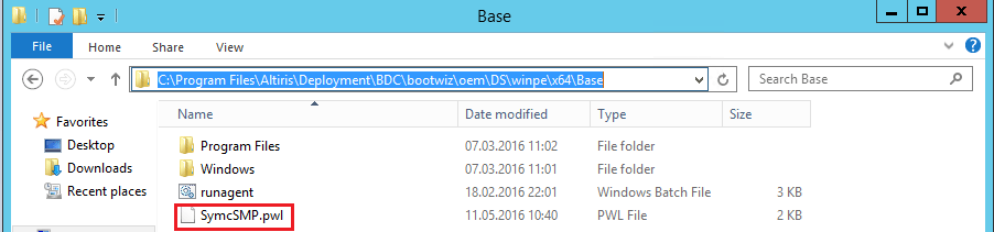 C:\Program Files\Altiris\Deployment\BDC\bootwiz\oem\DS\winpe\x64\Base (for WinPE x64) C:\Program Files\Altiris\Deployment\BDC\bootwiz\oem\DS\winpe\x86\Base (for WinPE x86)