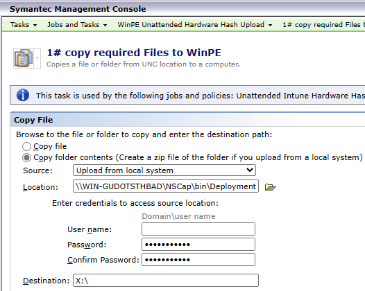 3. Create an Altiris Task to copy Files into WinPE and combine the Tasks in a Job