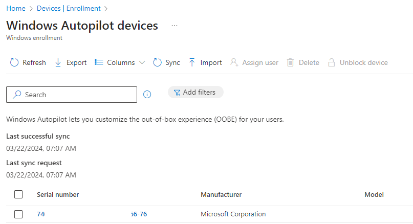 The Device with the Serial Number should appear. If you cannot find the Device click “Sync”
