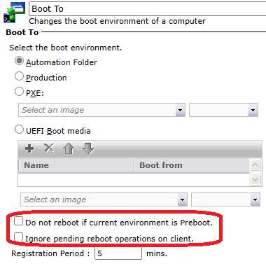 The Boot To task now includes a setting called „Do not reboot if current environment is Preboot„. This feature enables the system to bypass rebooting into the Preboot environment if the client is already booted into it. For more information, see Creating a Boot To Task.