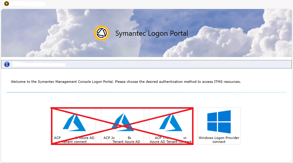 Since the release of ITMS 8.7.2 we are able to connect to multiple Azure Tenants using the newly introduced Authentication Providers. But instead of displaying a icon for each configured „Azure Logon Provider“ on the Symantec Logon Portal we would like to have a single Logon Window which still allows to authenticate for all configured „Azure Logon Providers“.