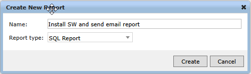 Create a new SQL Report using -> ITMS Console -> click on Manage Computers -> select Reports ->click on New Report ->Base Report ->Provide a Name im my case I´m using Install SW and send email report as name and select SQL Report from the drop down menu.