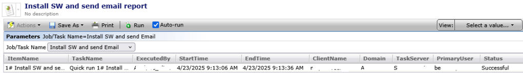 Here you find most of the important Information like ExecutedBy, StartTime, EndTime, ClientName the PrimaryUser and the Status of the Task.
