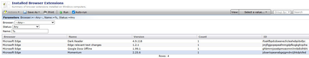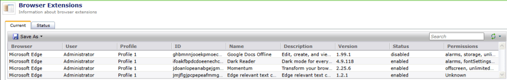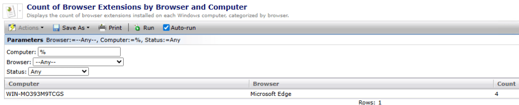 - Count of Browser Extensions by Browser and Computer
